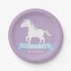 Purple party paper plates that have a cute white unicorn with pastel red, blue and yellow mane. Perfect for the birthday girl who wants a enchanting and magical unicorn themed birthday party! Personalise including the text on the banner with tiny hearts!