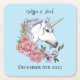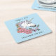White Unicorn Pink Flowers Blue Square Paper Coaster