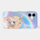 Perfect for her, this phone case features a portrait of a white unicorn against a double rainbow sky. White fluffly clouds float at the bottom. Her name is in white at the upper right. Unique!