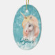 White Unicorn Teal Snowflake Believe Christmas Ceramic Tree Decoration