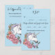 A white unicorn in profile is surrounded by pink, coral, and lavender flowers against a soft blue background.