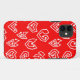 This phone case has a mid-century modern Valentine's design of white heart mazes on a field of red.