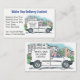 White Van Man Delivery Services Business with Name on a Company Van. Colour illustration of a driver at the wheel of a white van. Illustration appears on both sides of the business card. Courier delivery man and white van calling-card.