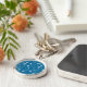 White Vine and Flower Pattern on Blue Key Ring