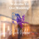 A window cling in elegant white text with floral artwork in violet hues, conveying your wedding welcome message,. Message MineByDesign for custom designs!