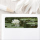 A pretty large white water lily in full bloom, its glowing petals reflected in the water surface of the serene, sunlit pond.