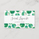 A pretty pattern of green water lily pads with white water lily flowers floating on the water. They are coloured in various water colour textures for a cut out paper collage look. They are arranged on the front and back of the card. This beautiful, water garden centric business card works well for people in a horticulture field, from professional landscapers, gardeners and arborists. The front features a customisable cursive script font for your name in black, and a place where you can add your job title. The back features social media icons, and by clicking "customise" you can move each icon around individually.