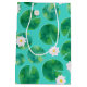 White Water Lily Flowers & Lily Pad Pattern Medium Gift Bag