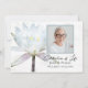 The simple elegance of the floral design creates a peaceful and respectful tone, making it well suited for commemorating a cherished life. The image of the water lily—often a symbol of peace, purity and spiritual renewal—adds a meaningful visual element to your message of remembrance.