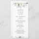 A lovely green and gold theme design with watercolor white flowers and green foliage. You can personalise the text and colours on this wedding program template.