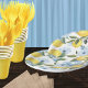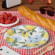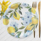White Watercolor Lemon and Flower Paper Plate