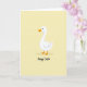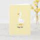 This card features a simple illustration of a white waterfowl centered on a soft, buttery yellow background, giving the scene a gentle springtime glow 🌷. The bird’s curved neck and rounded body are shaded with light gray, adding a quiet sense of closeness, like it’s leaning in to greet someone it cares about. Warm orange details define its webbed feet and slightly open beak, and a small touch of red inside the mouth suggests a friendly, almost smiling hello. The open space around the figure keeps the focus on the bird, like a calm pause before a shared holiday moment 🐰. Near the bottom, the words “Happy Easter” are placed beneath the bird in a flowing, handwritten-style lettering. The text appears in a darker tone that stands out clearly against the pale yellow, with generous spacing that keeps it airy and easy to read. The background remains a smooth wash of yellow with no added patterns or objects.