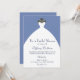 This lovely blue bridal shower invitation features a white wedding gown in the centre with shower information written in blue text. Fill in the blank templates makes customisation a breeze. Customise yours today!