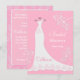 Elegant white wedding dress and swirls on a pink background Bridal Shower Invitation.