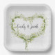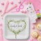 White lily bridal heart with bride and groom names on whitewashed wood.