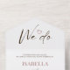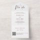Customisable modern white QR Code All In One wedding invitation. Featuring cute " We do " typography with a simple heart. To generate a new QR code that takes your guests to your wedding website, just add your website URL in the area provided in the "personalise this template" section.