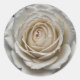 A close-up view of a white wet rose reveals its captivating beauty, with raindrops clinging to the petals, enhancing its freshness and purity. The dewy effect adds a sense of tranquillity and elegance to the delicate flower.