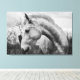 A beautiful wild-spirited white horse with a vintage inspired black and white design.