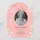Celebrate the memory of a beloved family member with these elegant funeral announcement cards. These cards feature delicate white wildflowers on a soft pink backdrop, offering a graceful and beautiful way to honour your loved one.
