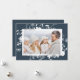 White Wildflower Silhouette Christmas Photo Navy Holiday Card