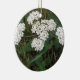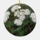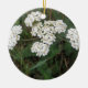 This pretty pendant style ornament features a detailed photograph of a pretty clump of white wildflowers. The photo was taken in the UK using macro photography for a detailed result.