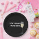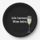 white wine with quote on black paper plate