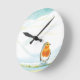 White Winter Landscape Illustration With Robin Round Clock