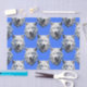 White Snow Wolf Head Seamless Repeat Pattern Design on Blue Background