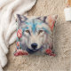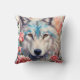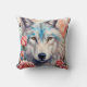 White wolf head pink roses animal wildlife nature original art painting Throw Pillow
