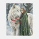 White Wolf Redhead Druid Winter Berries Fantasy Ar Fleece Blanket