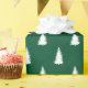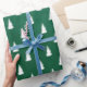 Christmas holiday gift wrapping paper featuring a white spruce tree in a repeat pattern on an ombre green forest background.