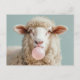 White Wooly Sheep Blowing Pink Bubble Gum Bubble Postcard
