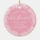 Christmas ornament to which you can add your own photo in honour of your baby's first Christmas. It's decorated with a simple white wreath with leaves and berries. Add your child's name and birth stats on the back in white against a lovely shade of pink.