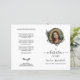 Modern memorial service program printed on a paper sheet you fold yourself. The funeral program features your loved one's photo inside a hand-drawn black wreath on a white background.