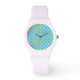 A pretty Sporty White Wristwatch, with a pattern of yellow primroses and green polka dots on a Turquoise Blue background: part of the Posh & Painterly 'Primroses' collection.