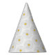 Party hat design features an original marker illustration of a yellow and white daisy flower blossom. Great for a garden party, bridal shower, wedding or engagement.