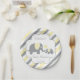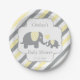 White, Yellow & Grey Stripe Elephants Baby Shower Paper Plate