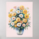 White yellow watercolor daisy bouquet poster