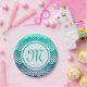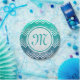 Elegant blue green gradient background and White Zigzag chevron. Custom monogram.