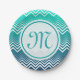 White Zigzag Chevron And Blue Green Background Paper Plate
