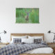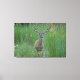 Majestic whitetail deer with dramatic antlers, stands in a late summer field with yellow grass and Queen Anne's lace flowers. Striking nature scene on wrapped canvas. Zoomed version available on 12 X 12 and 24 X 24- use the Customise feature to adjust size of photo and shape.