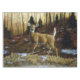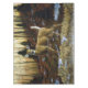 A whitetail doe is startled by your presence. Fall leaves and a light dusting of snow indicate it is late autumn in the forest. Realistic artwork created from an original oil painting by equine and wildlife artist Crista S. Forest.