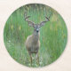 Bold Whitetail buck shows off wide antlers on a summer evening- great paper coasters for cabins, family room, porch or parties !