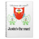 Red, aqua, and green owls with Woooo da man? by Deborah Miller