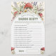 Who Knows Daddy Best? Baby Shower Game Card featuring a whimsical watercolor design with red toadstool mushrooms, wildflowers, and soft greenery. Cute baby shower game and cards for guests for a forest mushrooms themed baby shower - perfect for a Whimsical, cute celebration. Guests answer fun questions about the dad-to-be and tally their score, making an easy, interactive activity for game tables, favor displays, and woodland/boho baby shower decor.