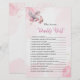 Celebrate the dad-to-be with this charming “Who Knows Daddy Best?” game card, part of our dreamy pink stork baby shower collection. The delicate watercolor clouds and classic baby-in-a-basket stork design make this game fun and theme-perfect. Guests can fill in their best guesses about the future father while enjoying the sweet aesthetic of soft pastels and gold sparkles.