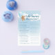 Who knows mummy best is a fun and interactive game that's perfect for a blue teddy bear themed baby shower. In this game guests answer questions about the mummy to be. First to answer all correctly wins!