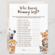 Who knows Mummy Woodland Animals Baby Shower Game