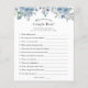 Bridal shower game card featuring watercolor greenery and blue flowers. A fun way to interact with shower guests.