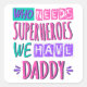 Great and cool text design with the funny saying "Who needs superheroes we have daddy”.